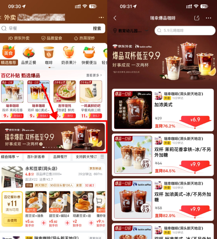 - 09-30 京东外卖瑞幸限时9.9亓2大杯